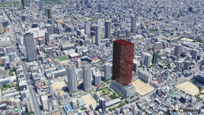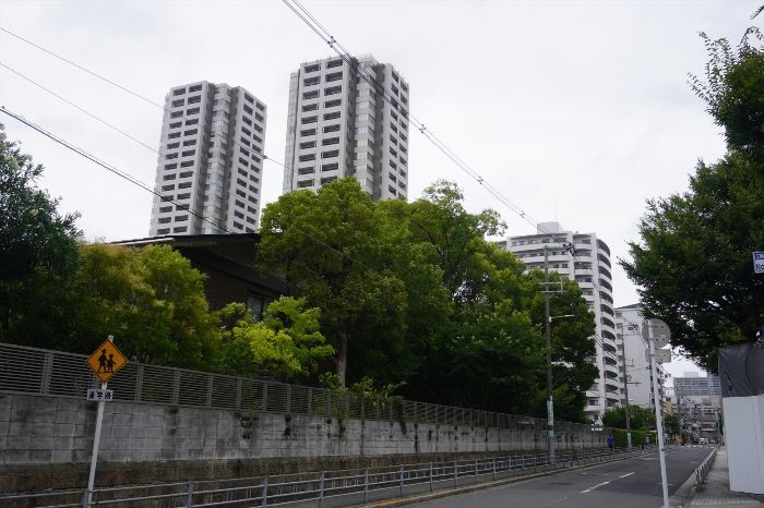建設地北側には、地上21階、高さ76mのタワーマンション「夕陽丘イクス」が建っています。