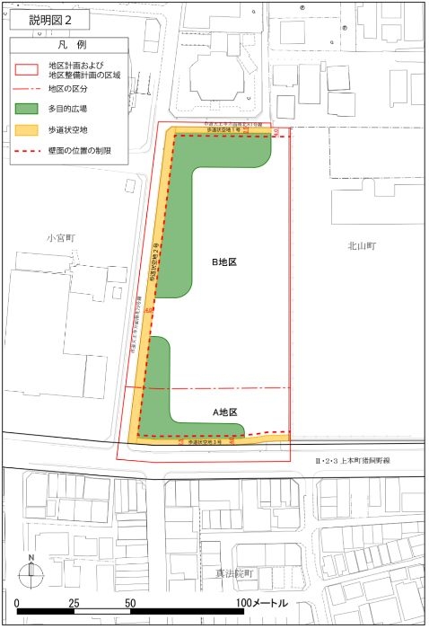地区計画では、良好で魅力的な住宅地の形成を目指し、商業・医療・教育などの機能を備えた利便性の高いまちづくりを推進するものとしています。安全で快適な歩行者空間や広場、緑地の確保を重視し、環境負荷軽減や防災性向上、バリアフリーにも配慮します。