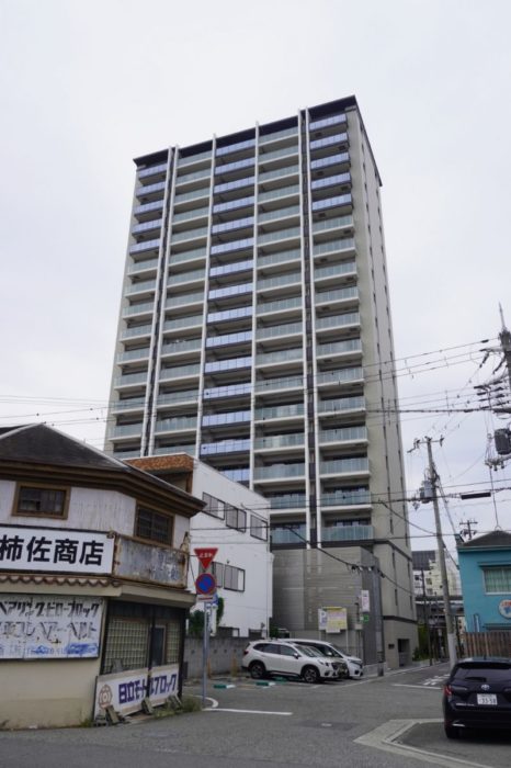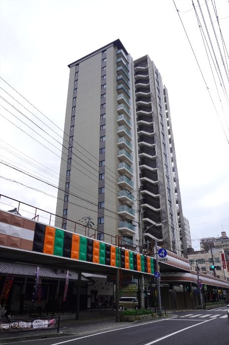 南側から見たジオ明石本町と明石駅前に建つプラウドタワー明石の様子です。