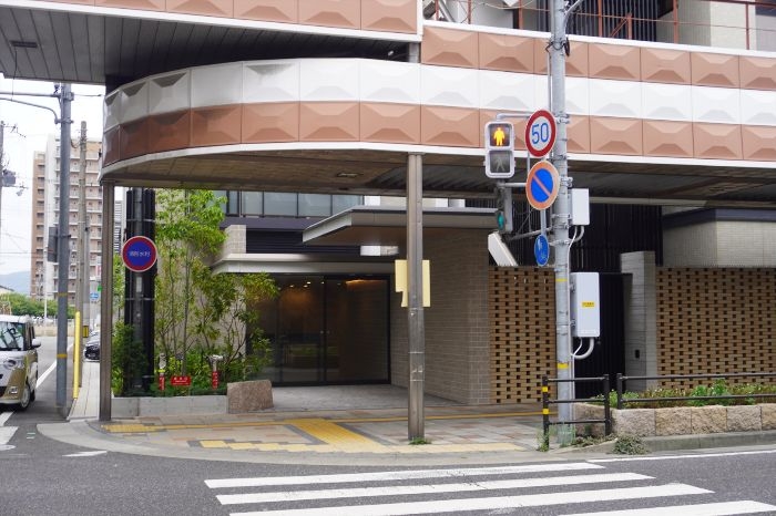 エントランスの庇屋根は、西国街道のアーケードから連続しています。