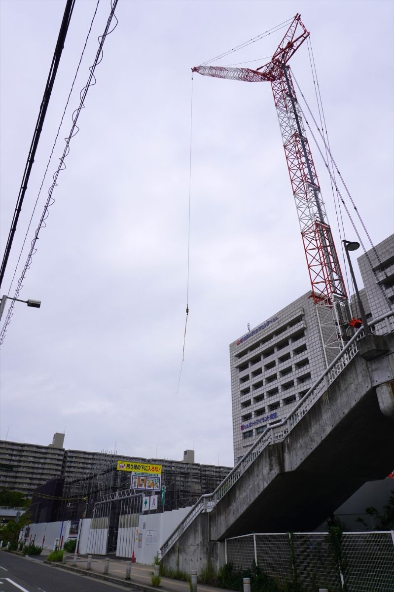 南西側から見た建設中のワコーレ神戸P.I.TOWERの様子です。
