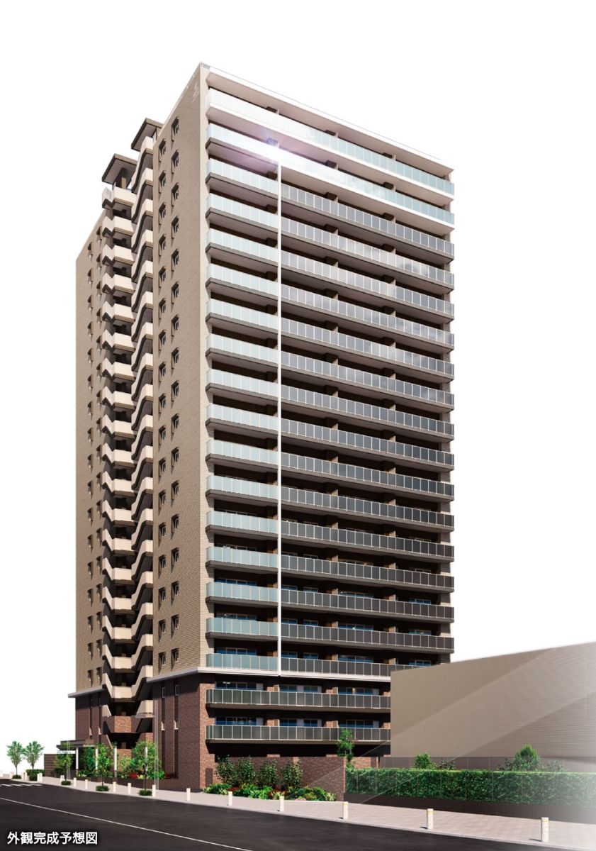 敷地内には、シマトネリコ、トウカエデ、サザンカなど多彩な植栽を配置し、四季を感じられる景観を演出。住まいの質と誇りを高めるランドスケープデザインが特徴です。駅前ランドマークとしてふさわしい20階建タワーレジデンス。縦のラインを強調したマリオンやガラス手摺によるアシンメトリーデザインを採用し、洗練された印象を与えています。質感豊かなタイルや天然石など高級感のある素材を選定し、邸宅としての格調を表現しています。