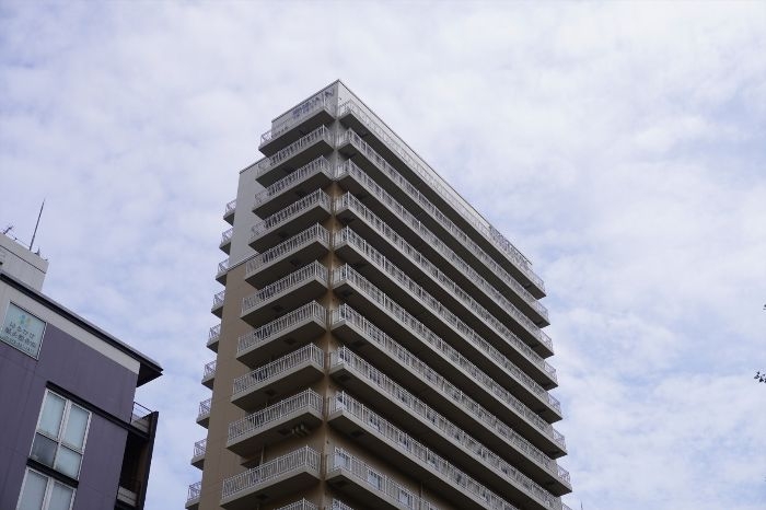 東横INN神戸三宮駅前の高層部分の様子です。東横INNロゴが設置されています。