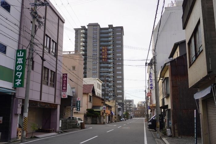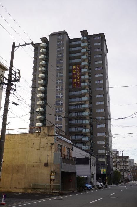 和歌山市駅側から見たウエリスタワー和歌山城北の様子です。