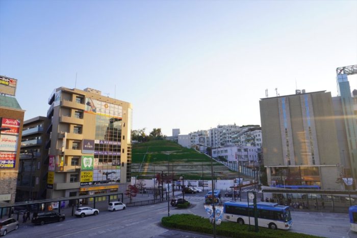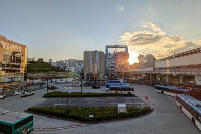 溝の口駅、武蔵溝ノ口駅前から見た(仮称)溝の口南口計画の建設地と溝の口の街並みです。