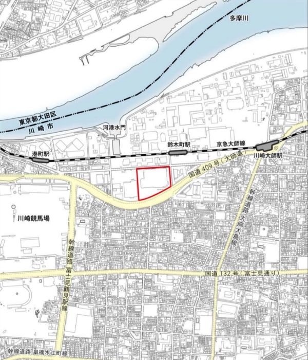 鈴木町駅周辺は、川崎エリアや羽田空港、イノベーション拠点である羽田・殿町エリアに近接し、研究施設や住宅、商業施設が混在する多機能地域です。このエリアは「都市再生緊急整備地域」や「川崎市都市計画マスタープラン」などの上位計画に位置付けられており、商業・業務・都市型住宅の整備や、多摩川の自然環境を活かした都市再開発が求められています。