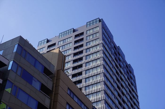 北東側から見た横浜ヴェールタワーの高層部分の様子です。