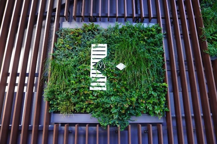 横浜ヴェールスクエアCeeUに入るテナントのロゴが外壁面に取り付けられています。