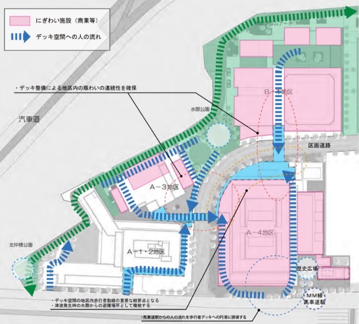 プロジェクトでは、横浜市役所から続くペデストリアンデッキの整備により歩行者動線を強化し、津波避難施設への認定を予定するなど、地域全体の防災性向上にも寄与します。