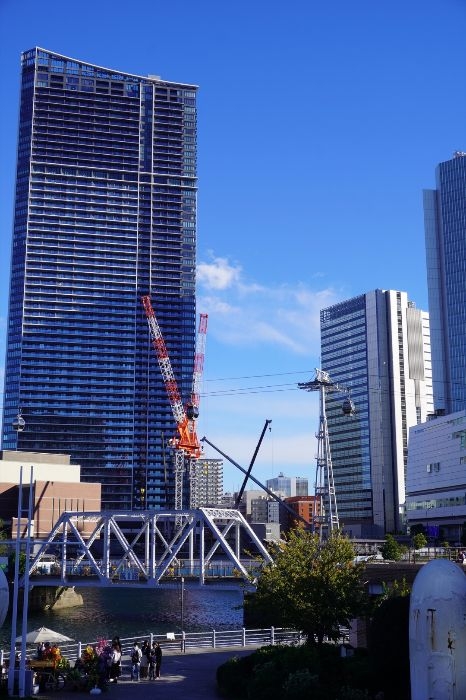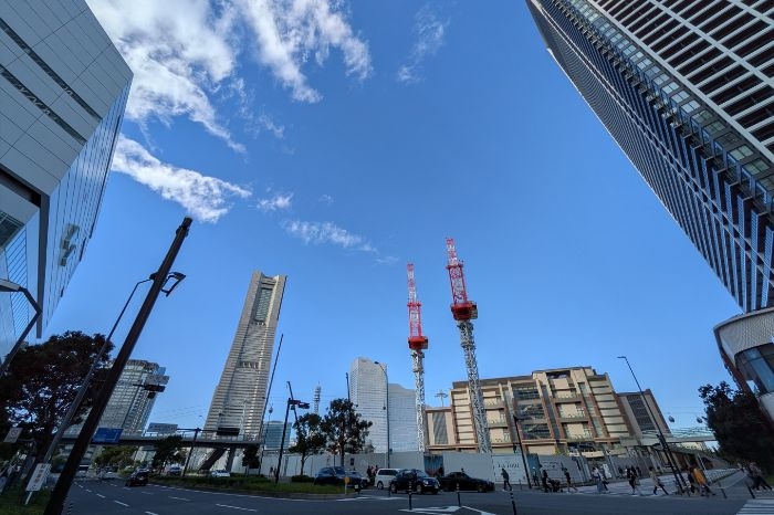 みなとみらい側から見た建設中の(仮称)北仲通北地区A1・2地区プロジェクトと北仲エリアの様子です。北仲エリアも超高層化が進んできました。