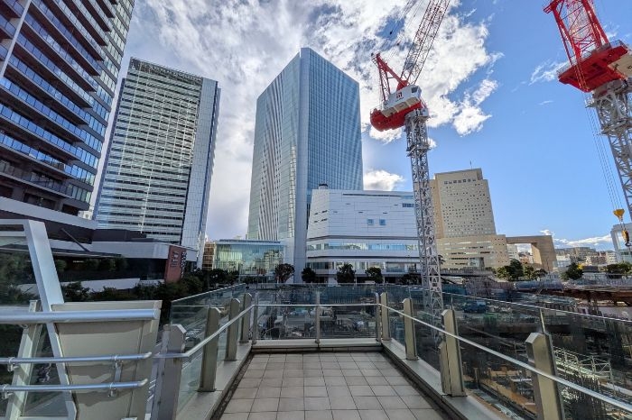 東側、ザ・タワー横浜北仲側から伸びるペデストリアンデッキです。この付近から接続される見込みとなっています。