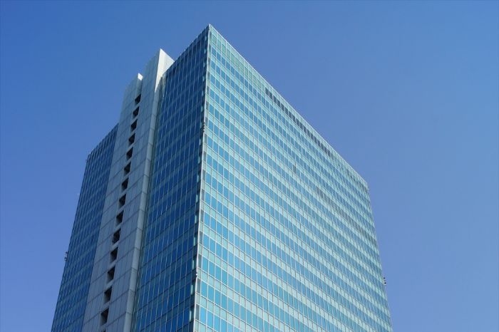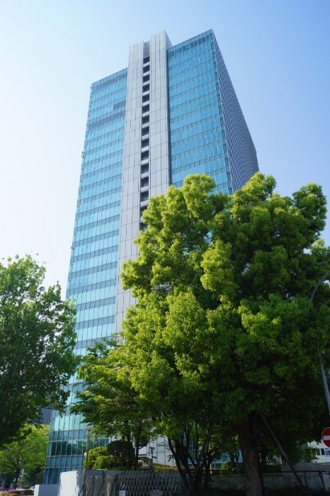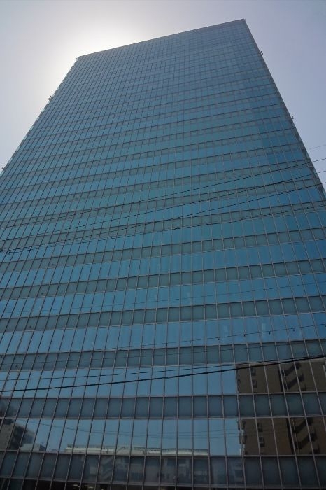 南西側から見上げた住友生命名古屋ビルの様子です。