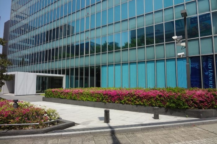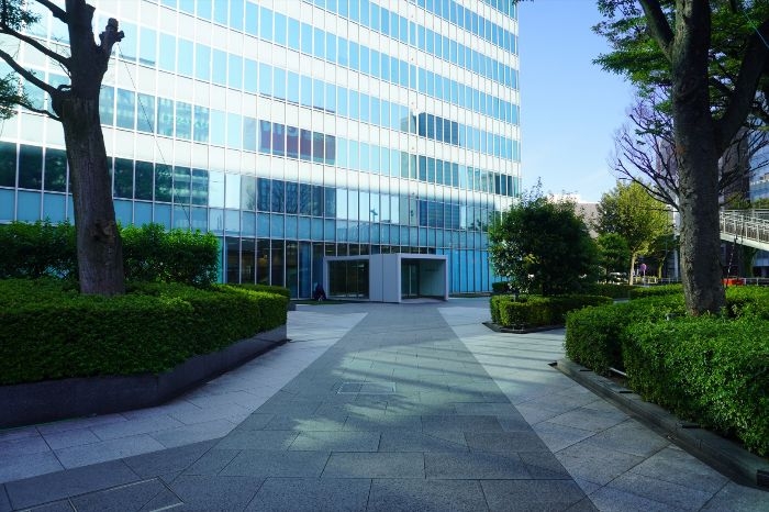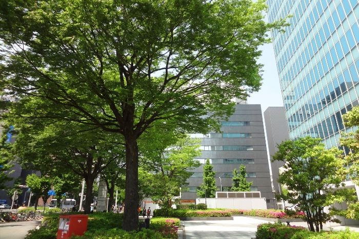 公開空地の広場には、多数の木々や草花が植えられていまさ。
