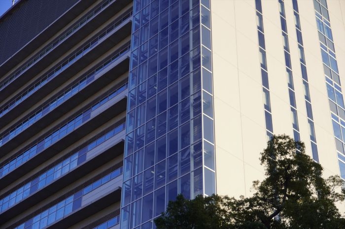 西宮市第二庁舎(危機管理センター)は、兵庫県西宮市六湛寺町に建つ地上12階、地下1階、高さ61.860mの超高層ビルです。立地は、北側を国道2号線、西側を市役所前線、南側を六湛寺公園に囲まれた場所に位置しています。