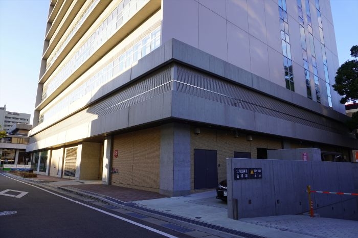 施設構成は、地下1階に駐車場、地上1階にエントランス、1階~3階に消防本部、4階に防災機器管理局、5階に情報管理部・マシンルーム、6階に電気室、6階~11階に都市局・土木局・上下水道局、12階に機械室となります。