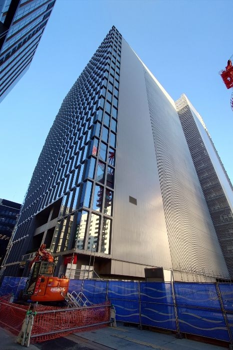 大手町に建つ赤白ロケットのような鉄塔が遂に解体へ!!タワークレーンが設置されて解体が進む「NTTコム大手町本館鉄塔および建物地上部解体工事」!!