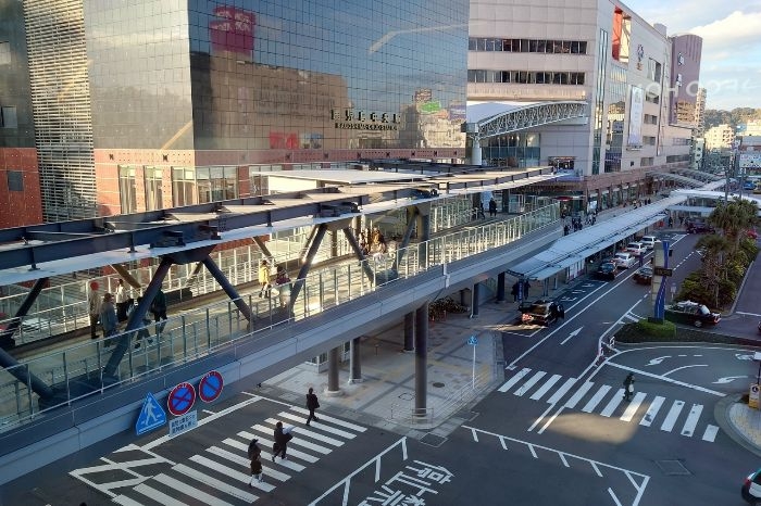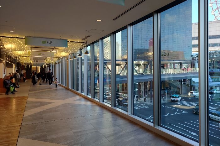 鹿児島中央駅と直結しているペデストリアンデッキの様子です。
