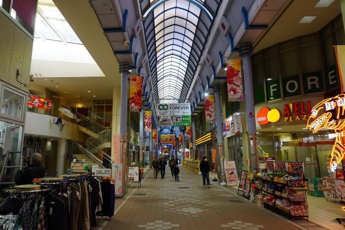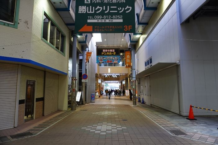 鹿児島中央タワー/ザ・パークハウス鹿児島中央タワーの南側に延びるアーケード商店街「一番街商店街」の様子です。