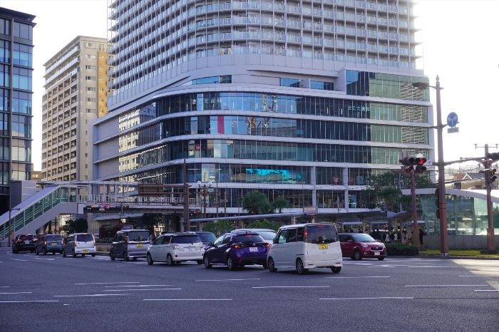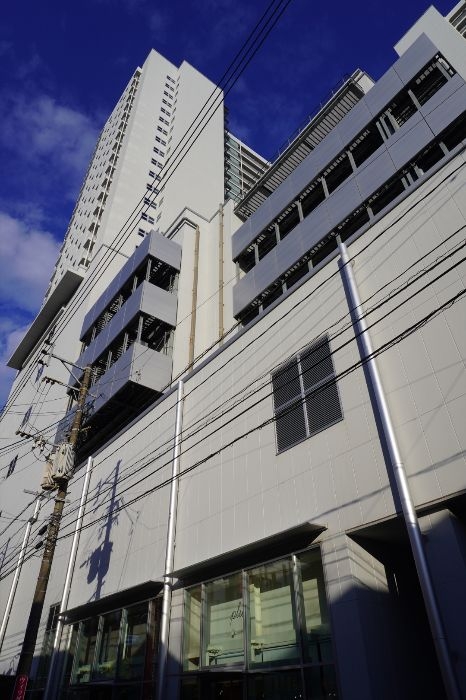 北側から見た鹿児島中央タワー/ザ・パークハウス鹿児島中央タワーの低層部分の様子です。