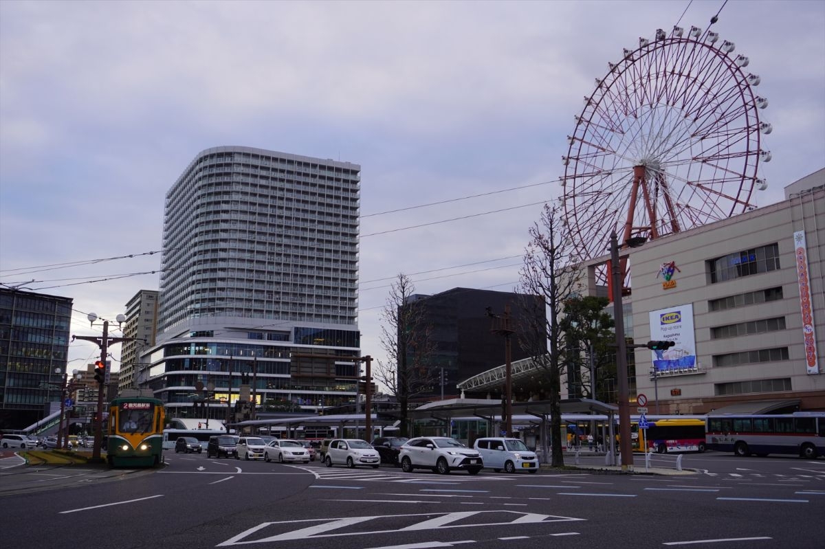鹿児島中央駅と鹿児島中央タワー/ザ・パークハウス鹿児島中央タワーの様子です。