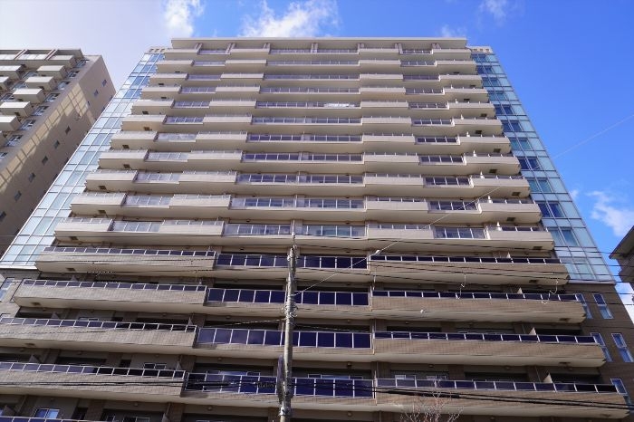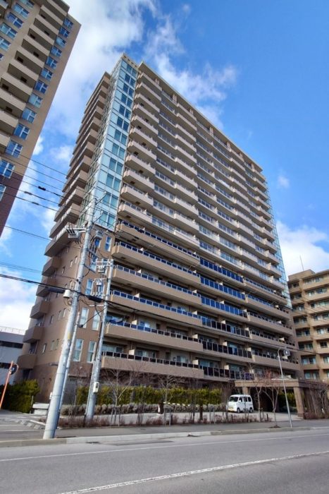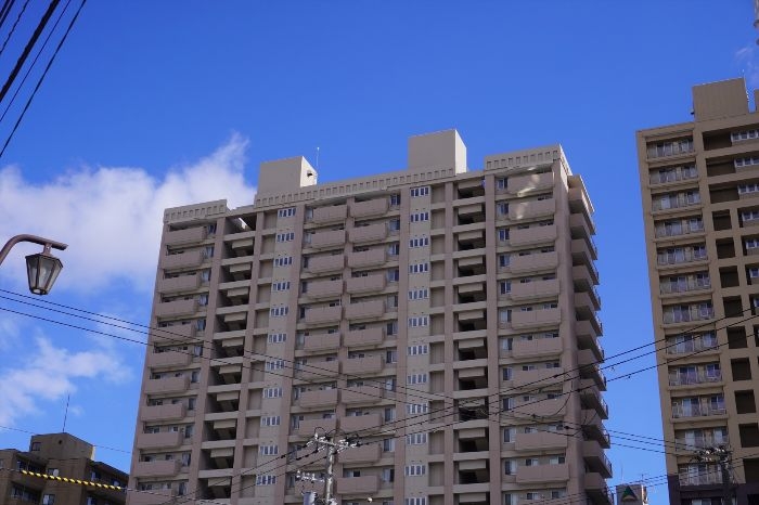 東側から見たワザック函館・五稜郭タクミコートの高層部分の様子です。