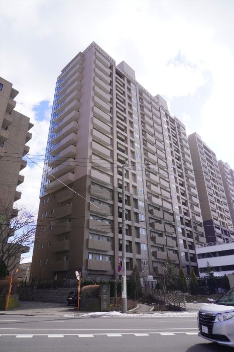 ワザック函館・五稜郭タクミコートは、北海道函館市梁川町6番に建つ地上18階、高さ63m、総戸数102戸の高層タワー型マンションです。立地は、南東側を公園線、北側を県道571号に面した場所に位置しています。