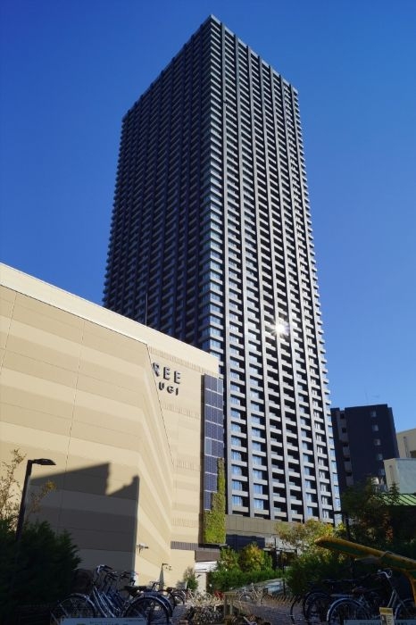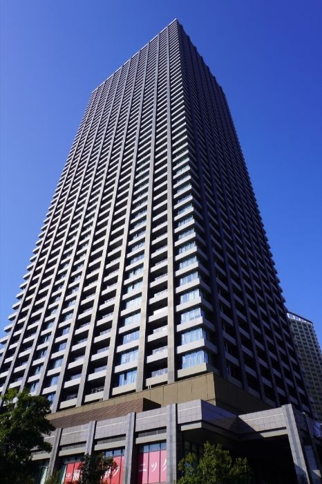 専有面積は54.66㎡~72.85㎡、間取りは2LDK~3LDK、共用施設にはグランドエントランスホール、車寄せ、コミュニティルーム、スカイラウンジ、ゲストルームが入ります。また、低層階には商業施設や業務施設、保育施設、学習塾なども入っています。構造面では免震構造の採用、外観デザインはアウトフレーム工法やダイナミックパノラマウインドウの採用による柱梁のフレームとガラスからなるものとなっています。