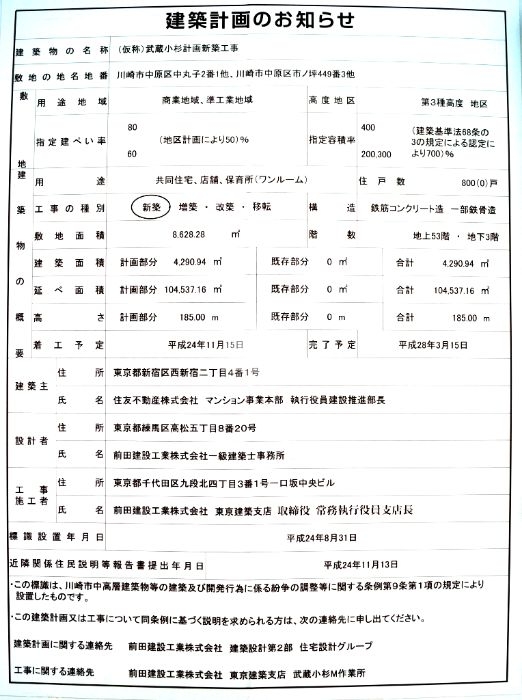 計画名 (仮称)武蔵小杉計画新築工事