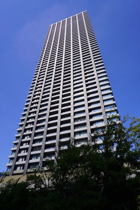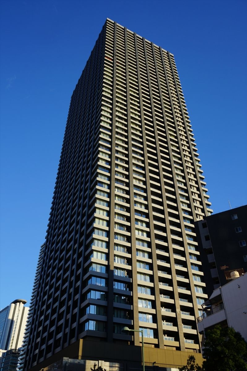 外観デザインは、アウトフレーム工法を採用することで柱を外周部に出し、タワーを強調するシャープな縦ラインを形成。緑豊かな基壇部から空へ向かって伸びゆく姿が美しく、街のランドマークとしての風格を漂わせています。