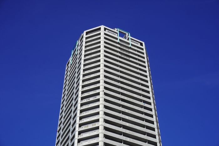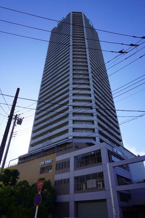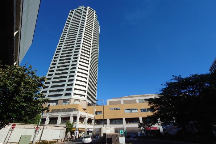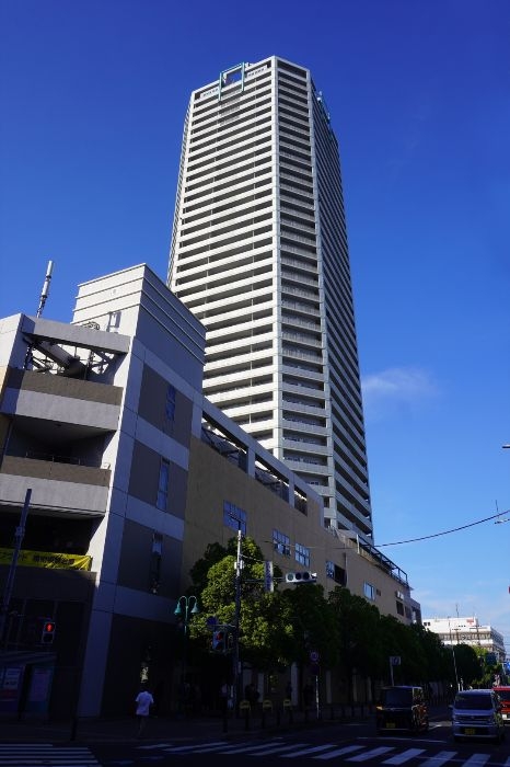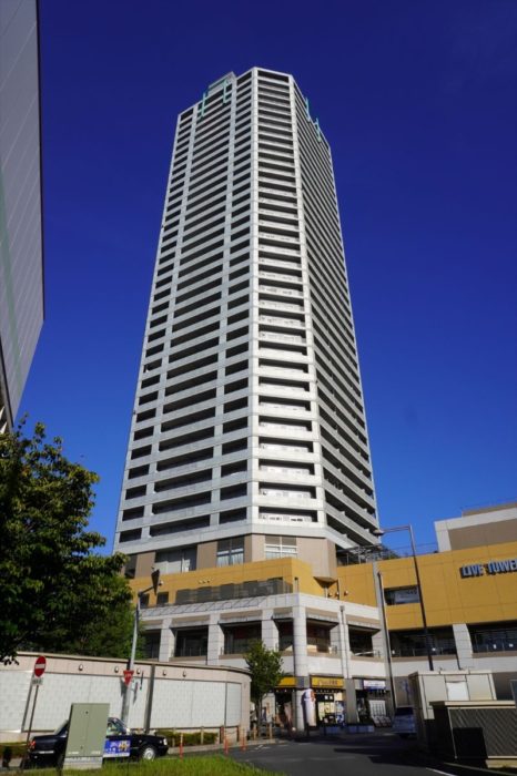 南東側から見上げたライブタワー武蔵浦和の様子です。