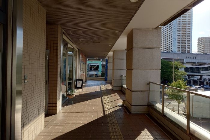 北側から見たライブタワー武蔵浦和の低層基壇部です。