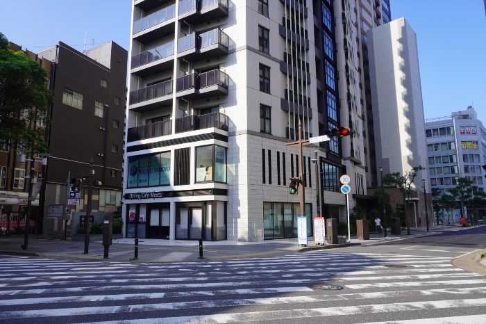 北東側から見たデュオヒルズ千葉中央の低層部分の様子です。1、2階に商業施設テナントスペースが確保されています。